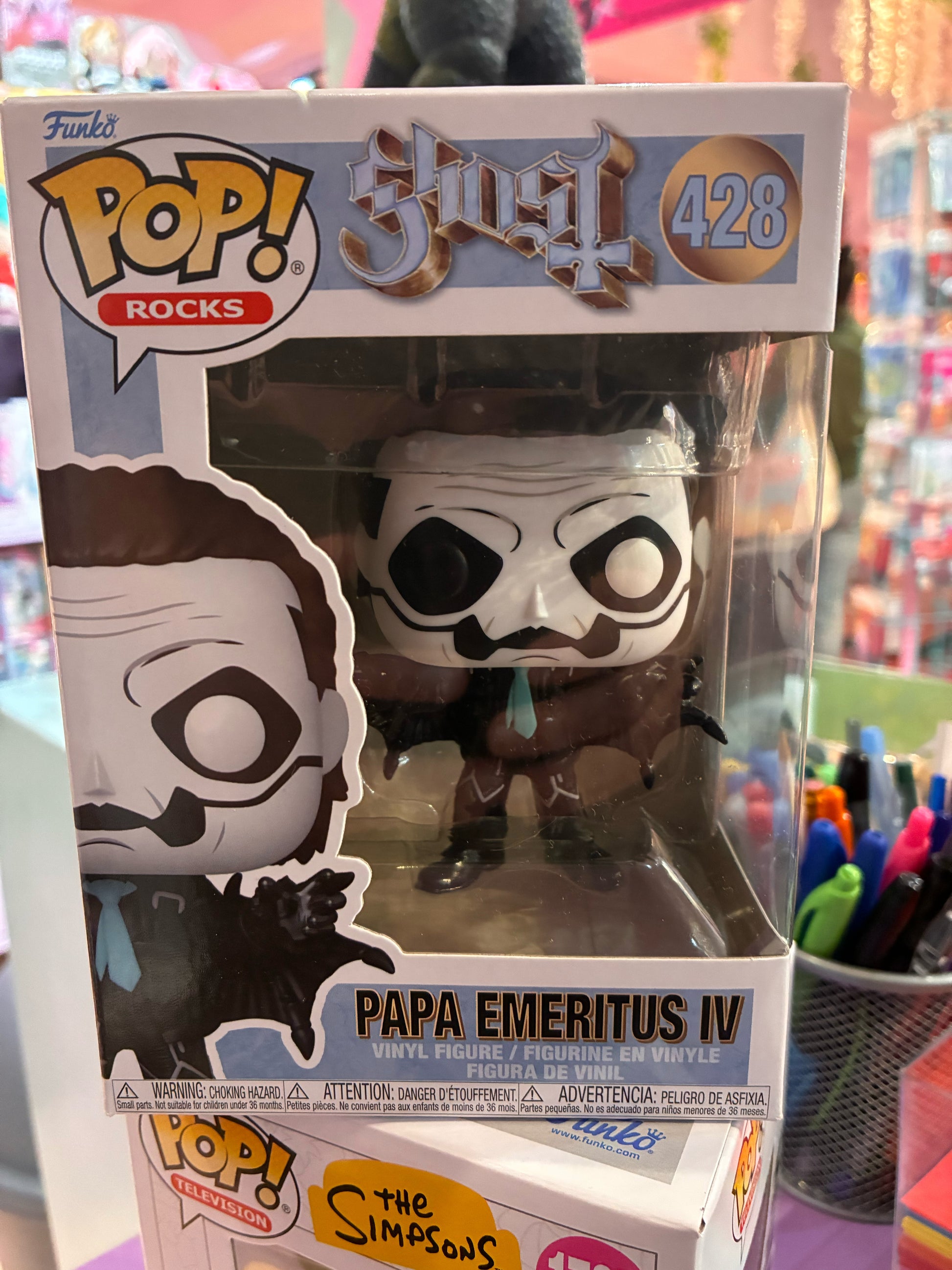De duistere charme van Papa Emeritus IV komt nu tot leven in Funko-stijl! Deze speciale Funko Pop! Rocks (#428) toont de iconische frontman van de Zweedse rockband Ghost, gehuld in zijn theatrale Bat Outfit. Met zijn kenmerkende geschminkte gezicht en gotische uitstraling is dit een onmisbaar verzamelobject voor fans van de band en liefhebbers van rockmemorabilia.