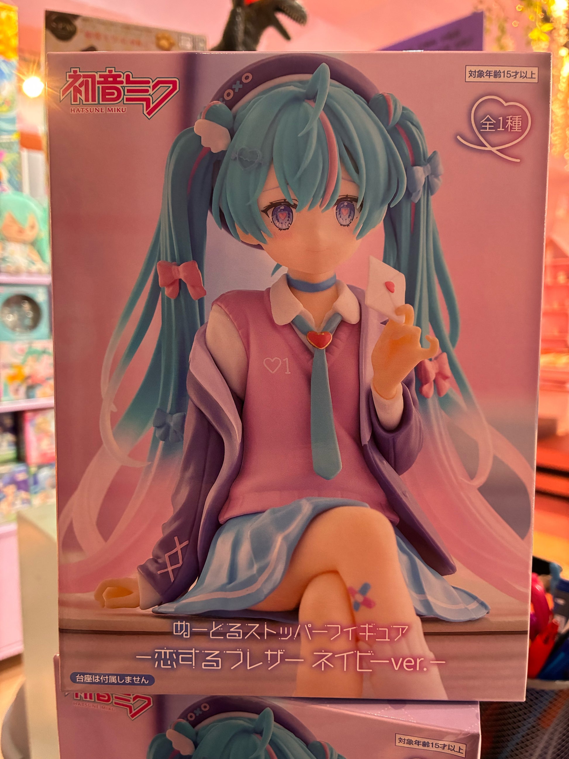 Houd je noedels warm met de hulp van Hatsune Miku! Dit schattige "Noodle Stopper" figuur van FuRyu toont Miku in een stijlvol schooluniform, terwijl ze verlegen een liefdesbrief vasthoudt. Ze is ontworpen om perfect op het deksel van je noedelbeker te balanceren, wat haar zowel een leuke als functionele toevoeging aan je collectie maakt.