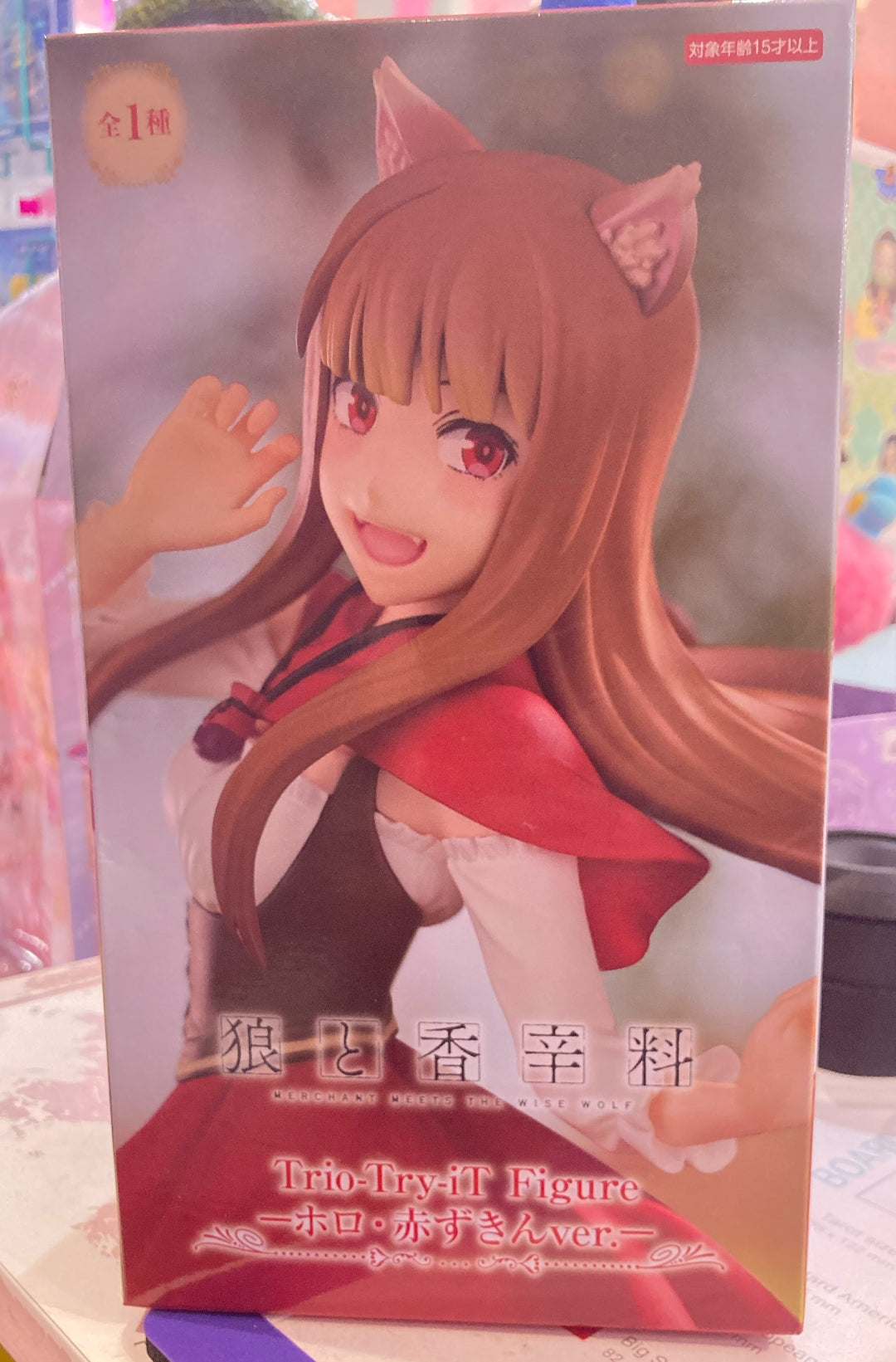 De Wijze Wolf van Yoitsu, Holo, uit de geliefde serie Spice and Wolf (Ookami to Koushinryou), betovert je in deze schattige "Red Hood Ver." (Roodkapje versie) van FuRyu's Trio-Try-iT Figure lijn! Dit figuur brengt een speelse en sprookjesachtige kant van Holo naar voren.