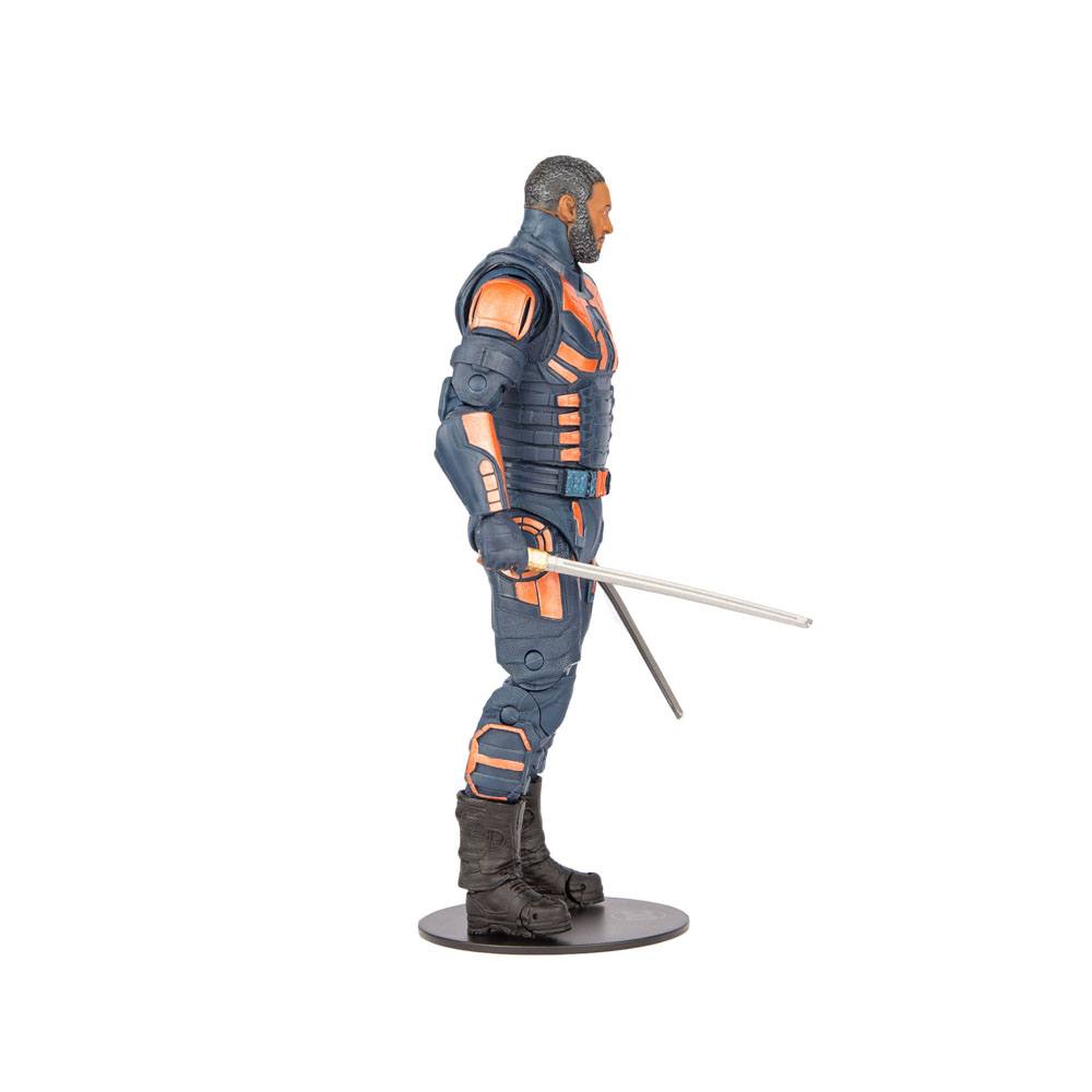 - Bloodsport-figuur wordt geleverd met een ongemaskerd hoofd en is gebaseerd op zijn uiterlijk in de film The Suicide Squad
