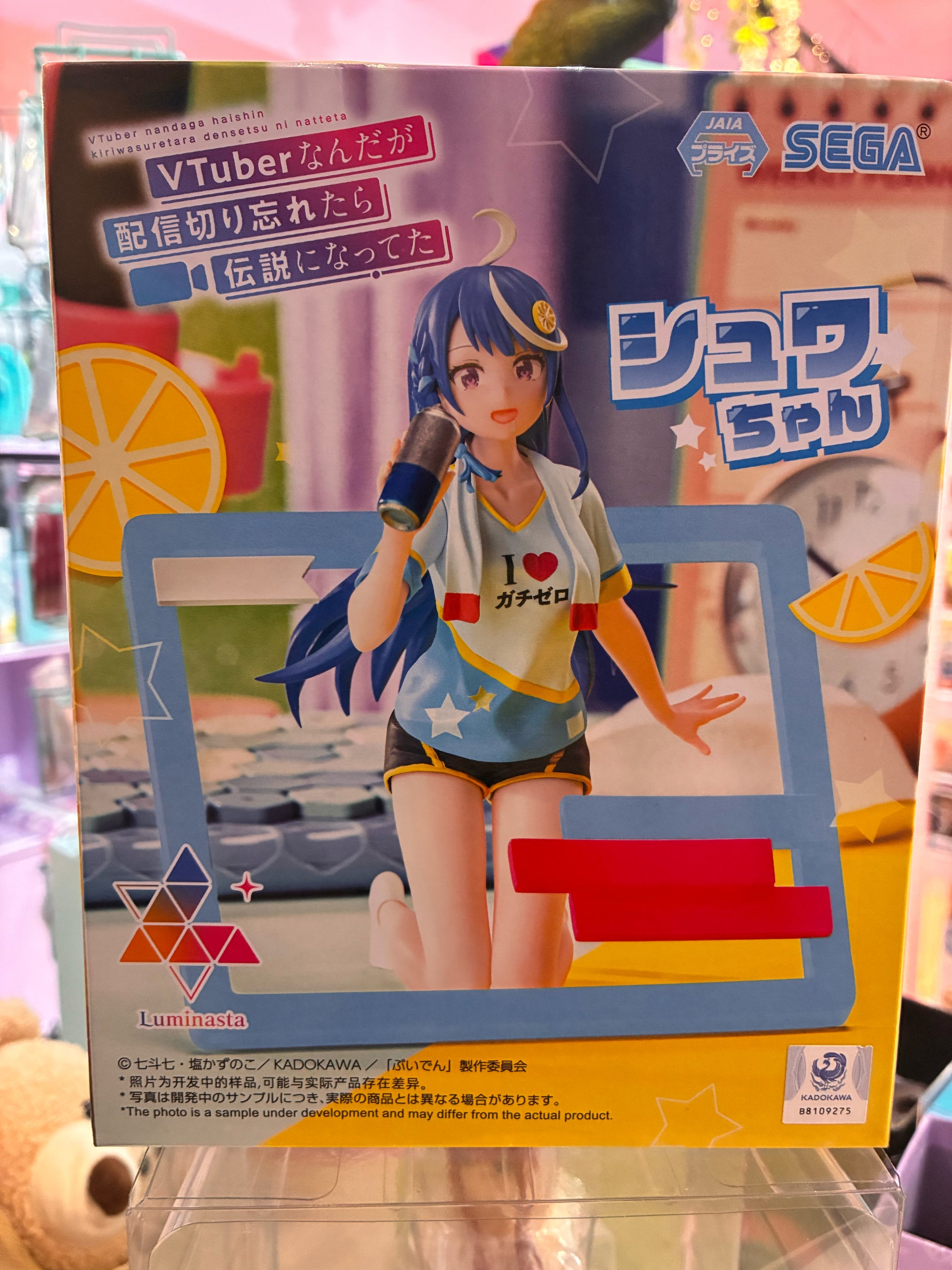 Wat gebeurt er als je vergeet je stream uit te zetten? Shuwa-chan, de schattige VTuber-sensatie uit de hit-anime VTuber Legend, komt tot leven in deze fantastische Luminasta-figuur van Sega! Gekleed in haar casual outfit en genietend van een drankje, is dit de perfecte weergave van de VTuber die per ongeluk een legende werd.