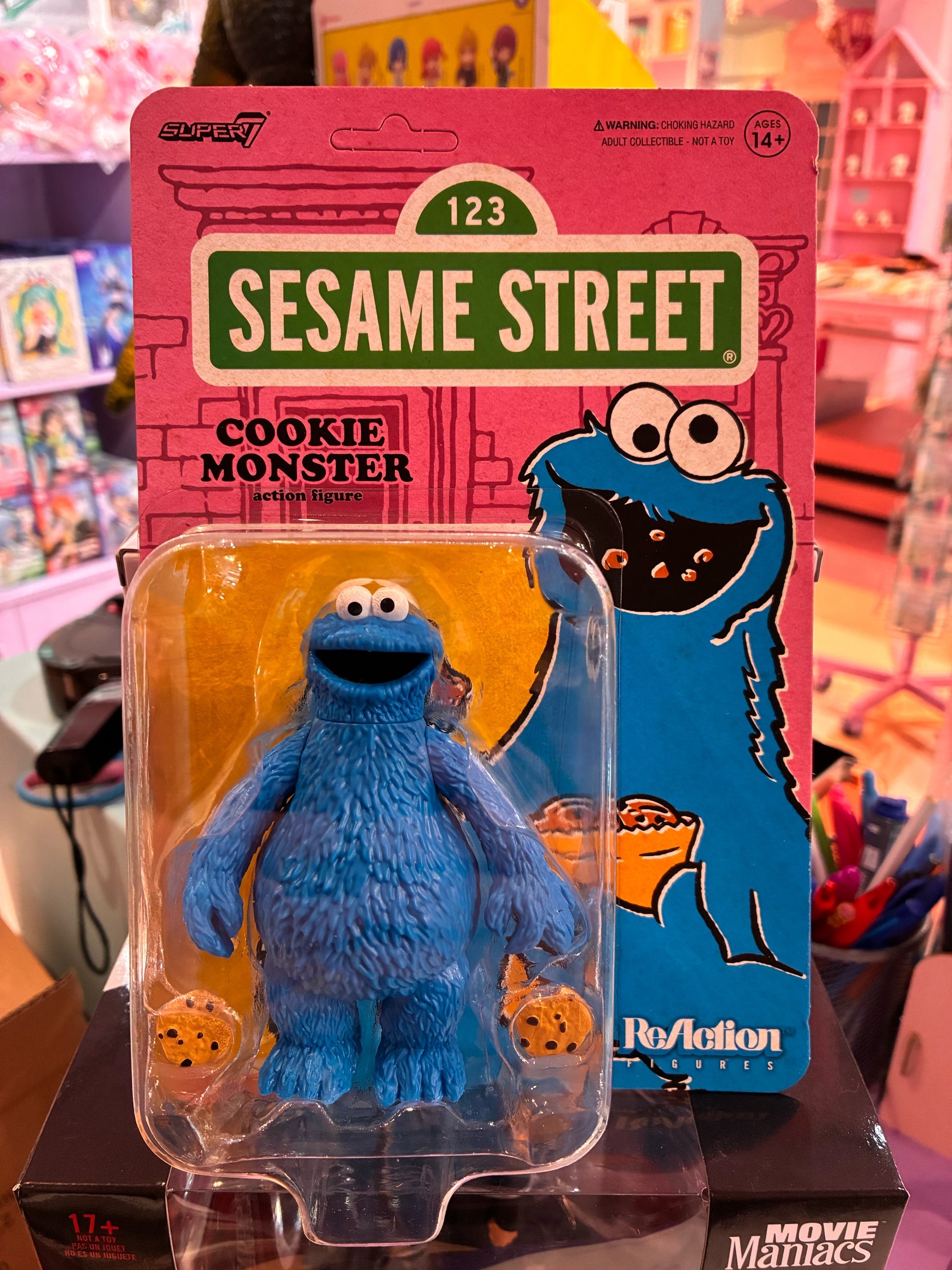 Om nom nom! Dit is het ReAction figuur waar je op hebt gewacht! De altijd hongerige Cookie Monster is klaar om je verzameling onveilig te maken, op zoek naar zijn favoriete snack. Een geweldig figuur in retro-stijl van Super7!