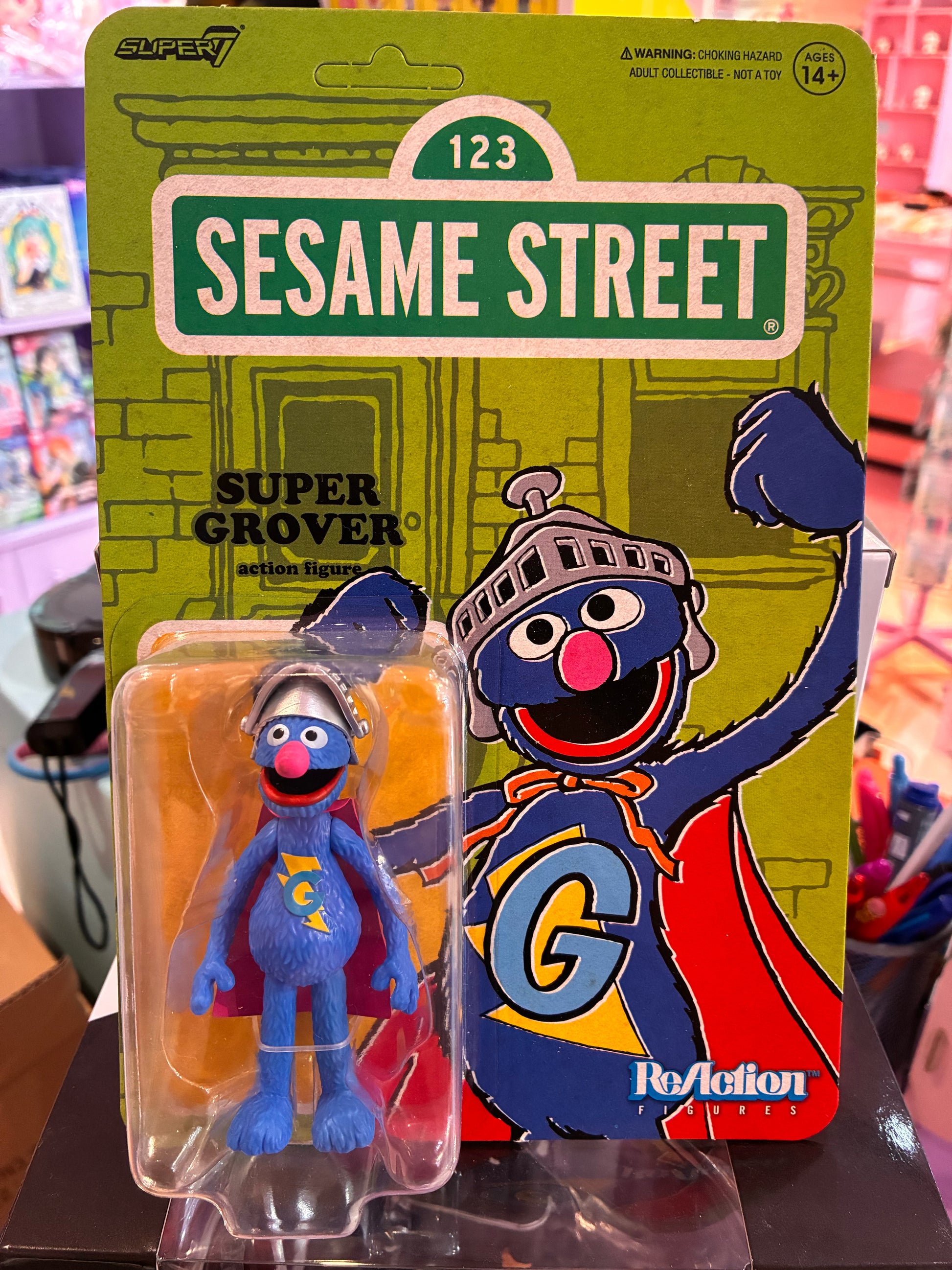 "Vrees niet, want Super Grover is hier!" De schattigste, harigste superheld van Sesamstraat landt in je collectie als dit geweldige ReAction figuur van Super7. Met zijn iconische ridderhelm en cape is deze held klaar om (per ongeluk) de dag te redden. Een fantastisch stukje nostalgie op een prachtige, retro-stijl kaart!